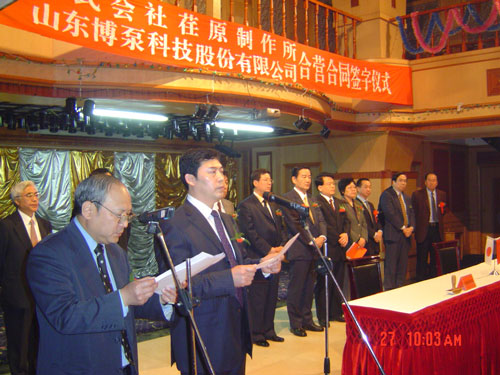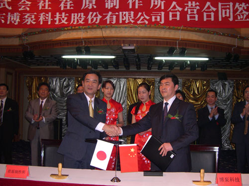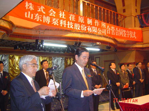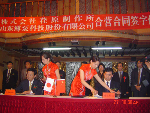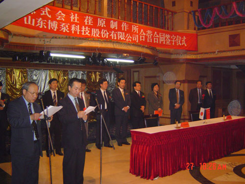 2005年4月27日,在博山萬(wàn)杰國(guó)際大酒店山東博泵科技股份有限公司與日本株式會(huì)社荏原制作所正式簽署了注冊(cè)資本1100萬(wàn)美元的合營(yíng)公司――荏原博泵有限責(zé)任公司。該公司的建立將通過(guò)引進(jìn)世界最大的泵企業(yè)――日本株式會(huì)社荏原制作所的先進(jìn)技術(shù),加快大型泵、高壓泵國(guó)產(chǎn)化進(jìn)程,建成具有國(guó)際競(jìng)爭(zhēng)力的一流企業(yè)。為中國(guó)水電、核電及超臨界火電項(xiàng)目,為南水北調(diào)等大型水力工程提供高質(zhì)量、高技術(shù)含量的一流泵產(chǎn)品,提升中國(guó)機(jī)械工業(yè)技術(shù)、質(zhì)量水平,促進(jìn)產(chǎn)品更新?lián)Q代,為中國(guó)電力、冶金、水力事業(yè)的發(fā)展乃至中國(guó)國(guó)民經(jīng)濟(jì)的發(fā)展做出應(yīng)有的貢獻(xiàn)。