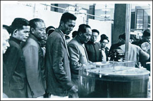 1958年毛澤東主席在北京展覽館興致勃勃地參觀荏原展臺(tái)