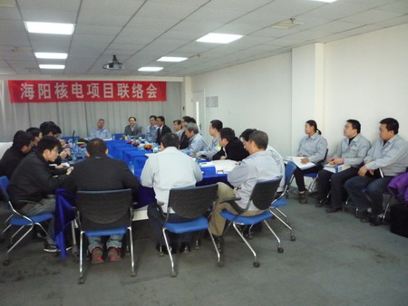 聯(lián)絡(luò)會主要是對我公司中標(biāo)海陽核電項(xiàng)目一期工程2*1000MW項(xiàng)目中的開閉試泵和循環(huán)水泵的有關(guān)文件進(jìn)行確認(rèn),以及進(jìn)度計(jì)劃等后續(xù)開始的建造工作進(jìn)行商議。