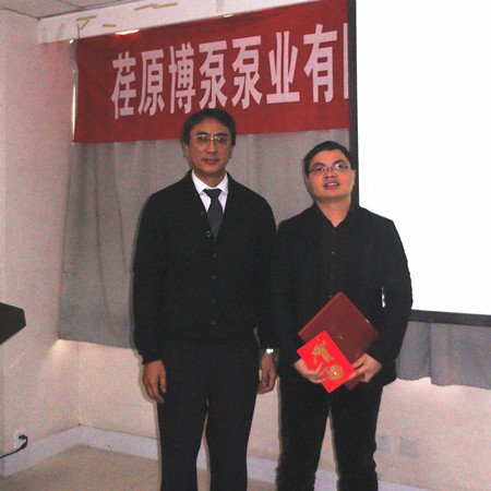 最后,對2012年度優(yōu)秀業(yè)務員――高文旭、優(yōu)秀技術工程師――夏紅軍進行了表彰,總經(jīng)理志賀進先生親自為他們頒發(fā)了證書及獎金。